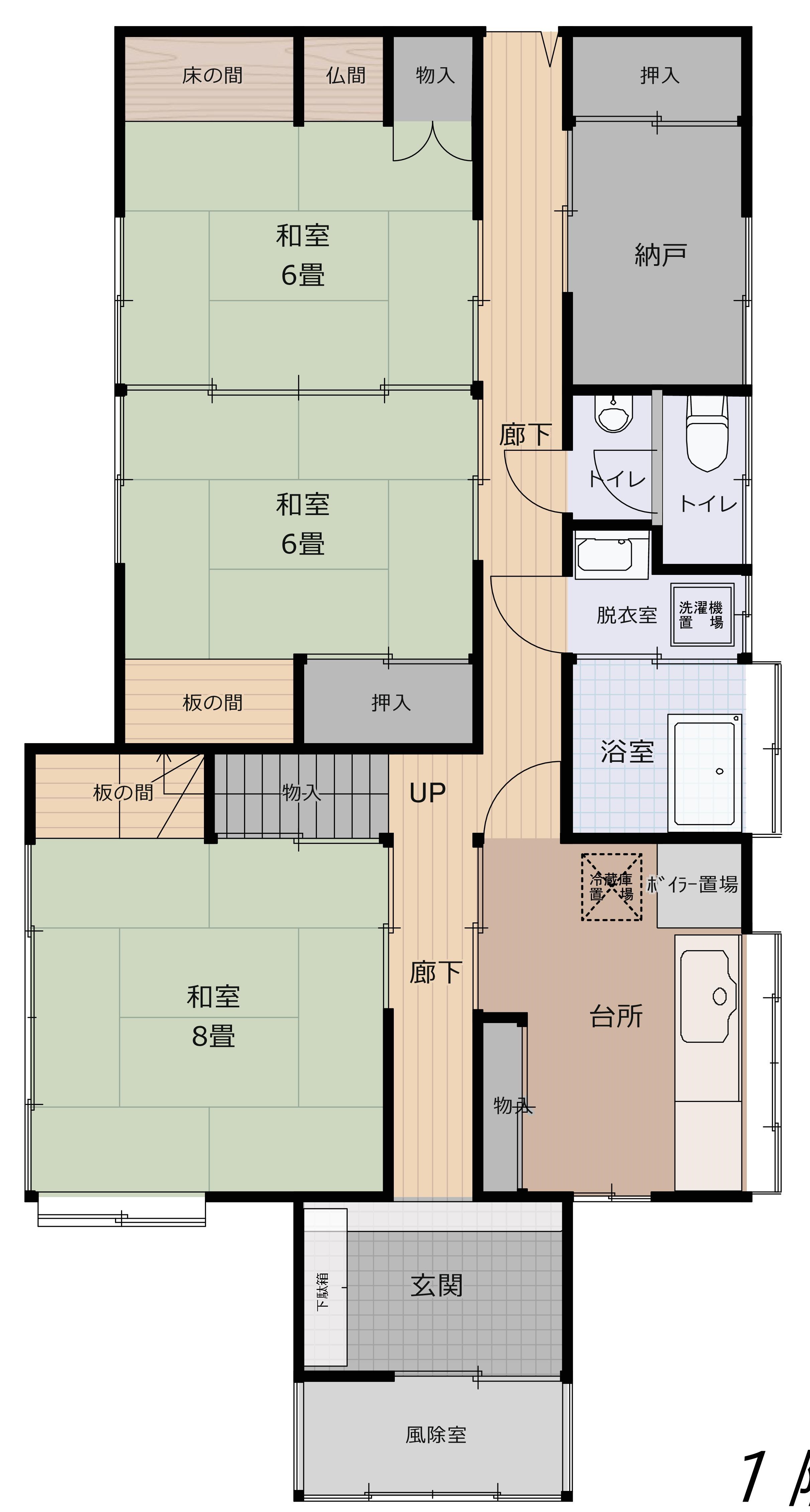 | 間取の内訳 | 和室8帖 ×2、和室6帖 ×3 |