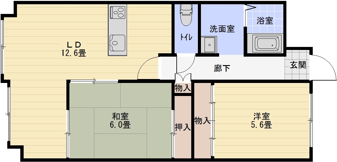 間取の内訳 洋室5.6帖 、和室6帖