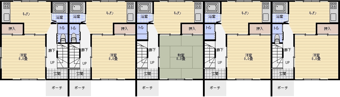 間取の内訳 洋室8帖 、和室6帖 ×2